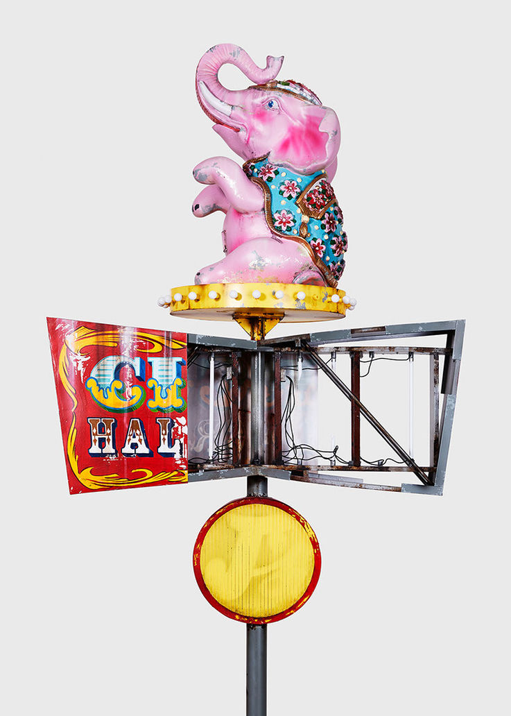 This sign doesn't exist in this form, but instead is a much more mundane sign with elements similar to this. Therefore, this sign is something of a departure from the rest of the series, displaying more of the artist's imagination instead of recreation.