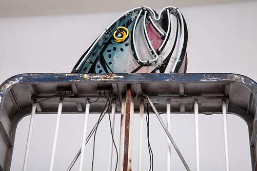 Unknown sign somewhere in California, with colour scheme altered for effect.