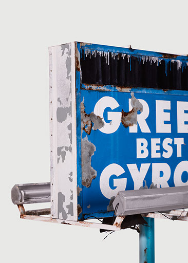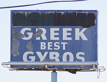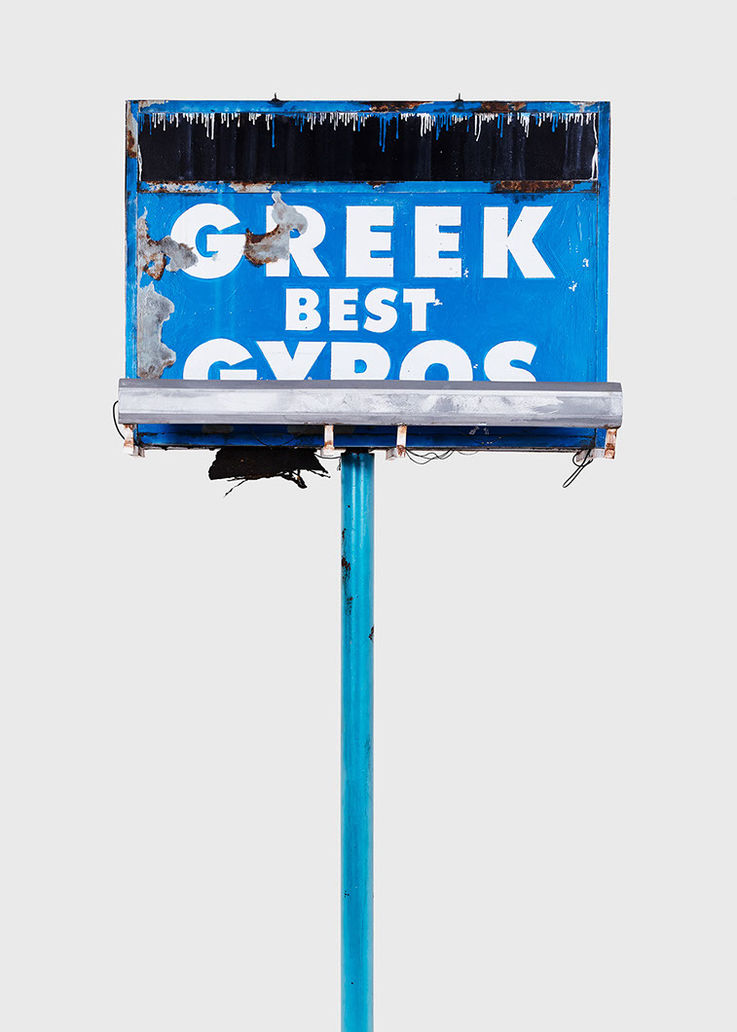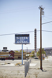 Located in the rural town of Baker, which originated as a truck stop near the Interstate 15, this weathered sign was something of a time capsule, featuring an old Subway logo on one side and a now-renamed eatery on the other. In 2019, this sign was replaced with one for The Mad Greek Cafe.