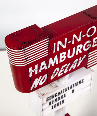 This sign is part of an exact replica of the original very first outlet in Baldwin Park, California.