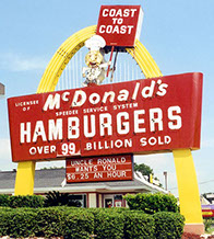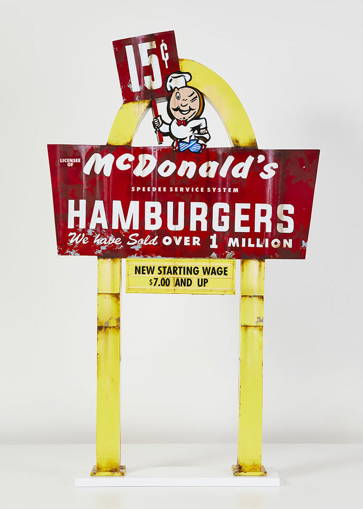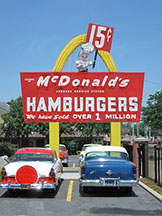 This is one of the original McDonalds sign constructed in the 1950's, before the rebranding with the double golden arch as this has the original single arch. The original sign has been preserved and is now part of the store museum on the site of the former McDonald's restaurant in Des Plaines, Illinois, opened by Ray Kroc in April 1955. The company usually refers to this as The Original McDonald's, although it is not the first McDonald's restaurant but the ninth; the first was opened by Richard and Maurice McDonald in San Bernardino, California in 1940, while the oldest McDonald's still in operation is the third one built, in Downey, California, which opened in 1953.