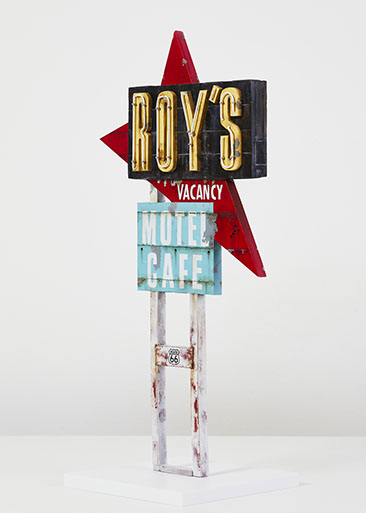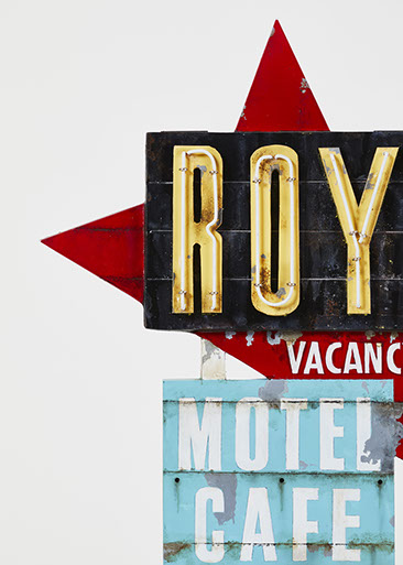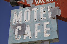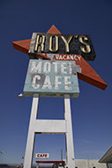 Roy's Motel is an iconic site, defunct for many years but now being largely restored, on the National Trails Highway Route 66. Situated in the tiny town of Amboy in the Mojave Desert, the structural integrity of signs in the desert states do not decay to the same extent as in eastern states due to dry atmospheric conditions.